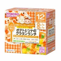 「鮭と椎茸のまぜごはん」と「ポテトとツナのグラタン」の詰め合わせです。