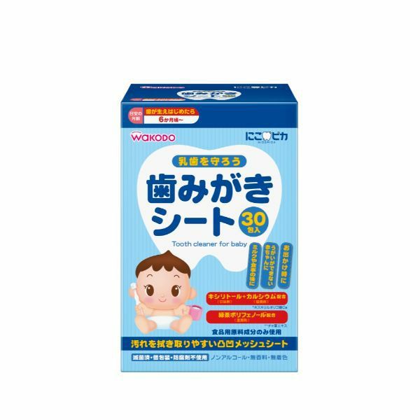 デリケートな乳歯のお手入れにさっと、やさしく拭き取れる歯みがき用のウエットシートです。