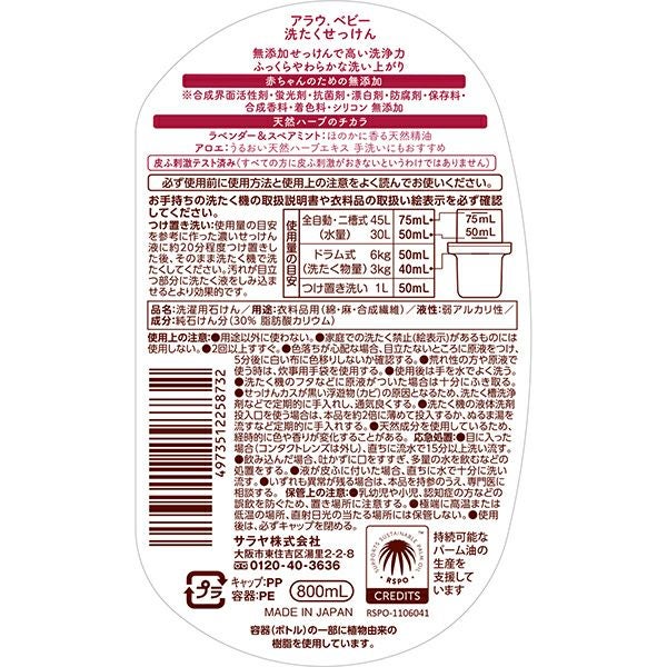 アラウベビー 洗たくせっけん 800mL