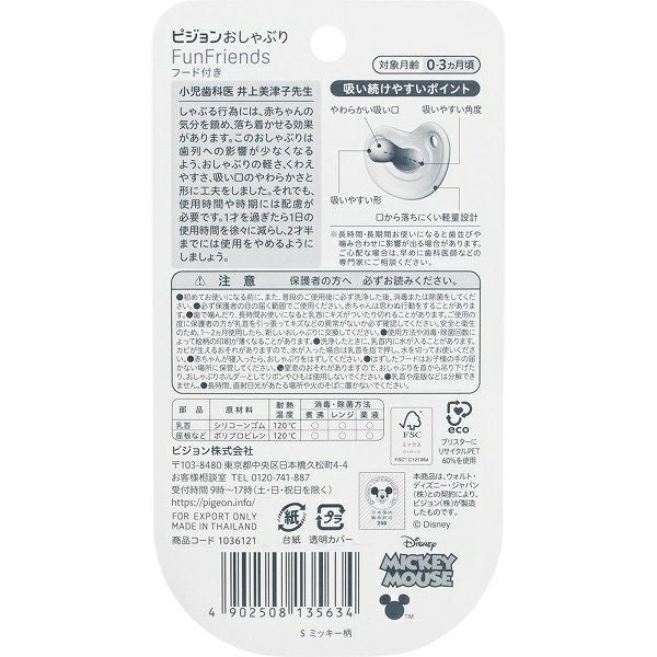 おしゃぶり FunFriends 0-3ヵ月 S ミッキー柄 1個 ピジョン