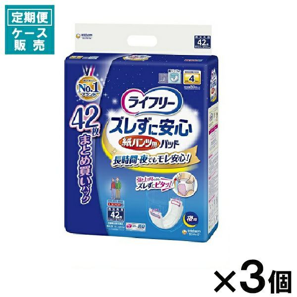 【定期便】【ケース販売_3入り】ライフリー ズレずに安心紙パンツ専用尿とりパッド夜42枚