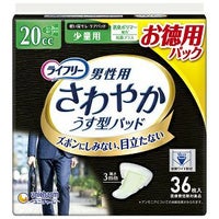 男性用の「ズボンにしみない、目立たない」軽い尿漏れパッド。前側ワイド形状で、体の前面を広くカバー。「ホールドギャザー」採用で、はみ出しをしっかりガード。薄型形状でアウターに響かない。においを閉じ込めるポリマー配合。