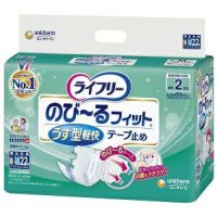 つけごこち感UP!最もからだにフィットして軽快なうす型テープ止めです。動きにあわせて伸縮するのび~るテープと、紙パンツのようなうす型のスッキリ形状で股ぐりやおしりがごわつかず、軽快に過ごすことができます。