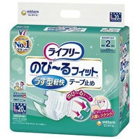 つけごこち感UP!最もからだにフィットして軽快なうす型テープ止めです。動きにあわせて伸縮するのび~るテープと、紙パンツのようなうす型のスッキリ形状で股ぐりやおしりがごわつかず、軽快に過ごすことができます。