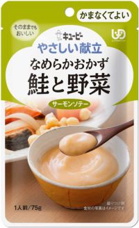鮭、セロリをソテーして素材のおいしさをひきだし、じゃがいも、にんじん、炒め玉ねぎ、ひよこ豆と一緒になめらかに裏ごししました。