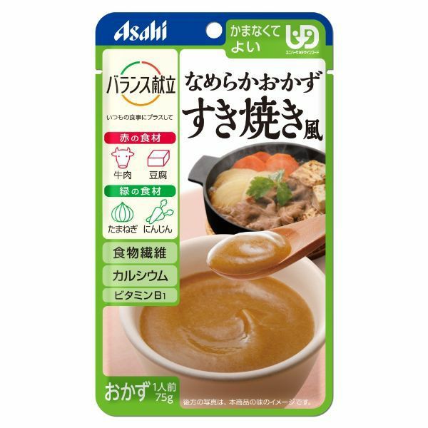 たまねぎ、にんじん、牛肉、豆腐をなめらかに裏ごしし、すき焼き風に仕上げました。