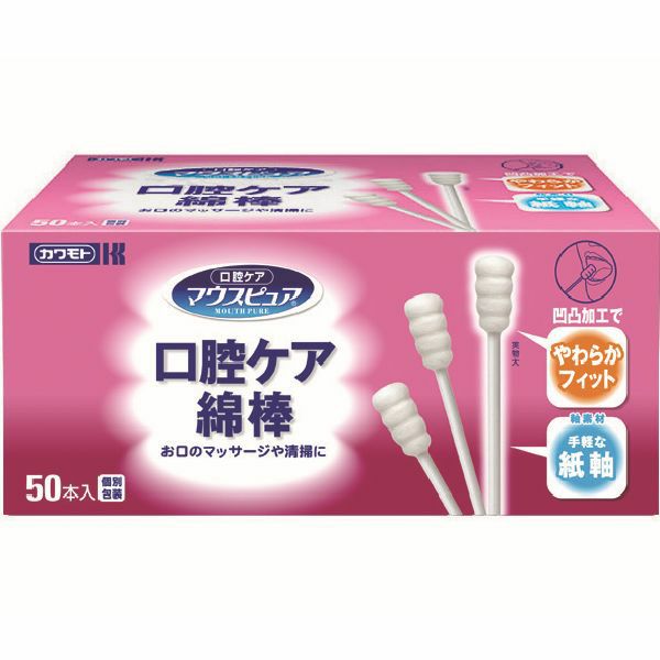 口腔乾燥がある方は、綿体に水分を含ませてからお使いください。