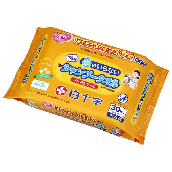 ◎水がいらない拭くだけのシャンプー用ウェットタオルです。