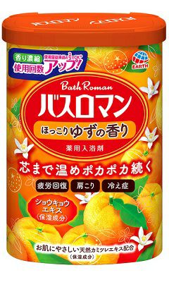 有効成分が、温浴効果を高め、血行を促進し、肩こりや腰痛を和らげます。ほっこりゆずの香りです。ウォームグリーン(透明)のお湯色です。(医薬部外品)