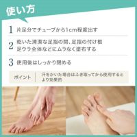 2.乾いた清潔な足指の間、足指の付け根、足ウラ全体などにムラなく塗布する。