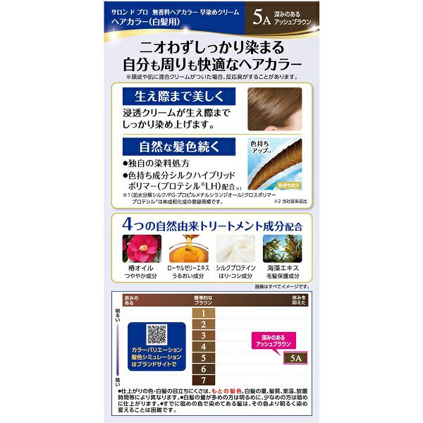 他の画像を見る サロン ド プロ 無香料ヘアカラー 早染めクリーム(白髪用) 5A 深みのあるアッシュブラウン 40g+40g ダリヤ (医薬部外品) 本体価格 ¥ 636 税込 カートに入れる お気に入りに登録する