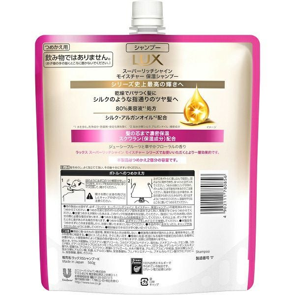 他の画像を見る ラックス スーパーリッチシャイン ストレートビューティー うねりケアシャンプー つめかえ用 560g ユニリーバ・ジャパン 本体価格 ¥ 636 税込 カートに入れる お気に入りに登録する