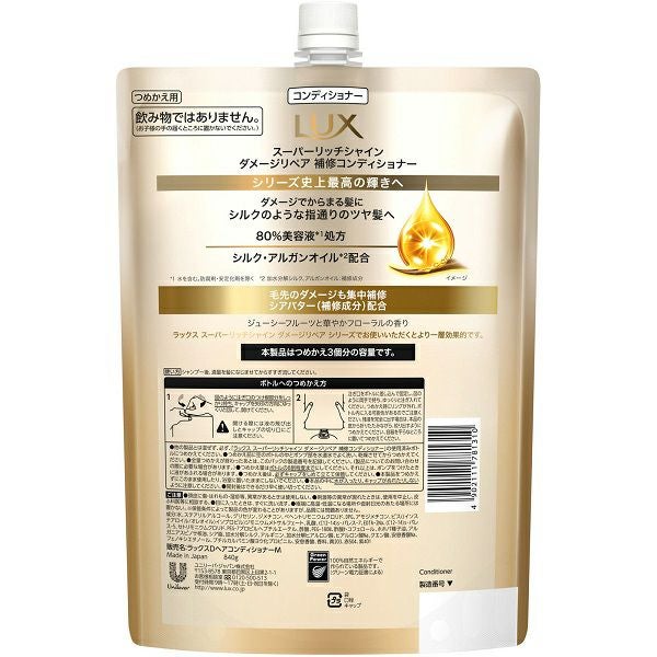 他の画像を見る ラックス スーパーリッチシャイン ストレートビューティーうねりケアコンディショナーつめかえ用 560g ユニリーバ・ジャパン 本体価格 ¥ 636 税込 カートに入れる お気に入りに登録する