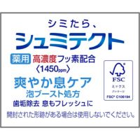 知覚過敏で歯がシミるのを防いで、息も爽やかに。歯垢除去 息もフレッシュに。 効能・効果は歯がしみるのを防ぐ。ムシ歯の発生および進行の予防。歯石の沈着を防ぐ。タバコのヤニ除去。歯を白くする。口中を浄化する。口中を爽快にする。