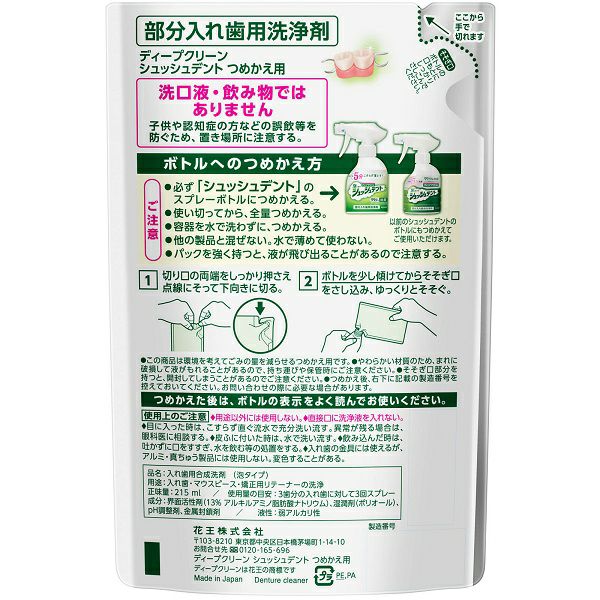 ディープクリーン シュッシュデント 部分入れ歯用洗浄剤 つめかえ 215ml 花王