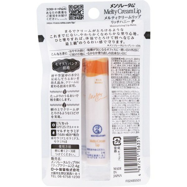 メンソレータム メルティクリームリップ リッチハニー 2.4g