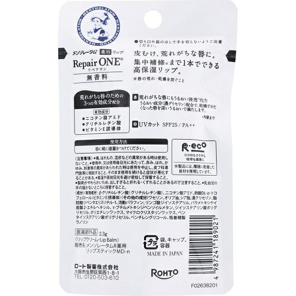 メンソレータム薬用リップ リペアワン 無香料 2.3g ロート製薬 (医薬部外品)