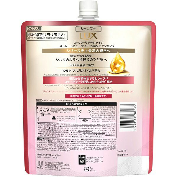 他の画像を見る ラックス スーパーリッチシャイン ストレートビューティー うねりケアシャンプー つめかえ用 560g ユニリーバ・ジャパン 本体価格 ¥ 636 税込 カートに入れる お気に入りに登録する