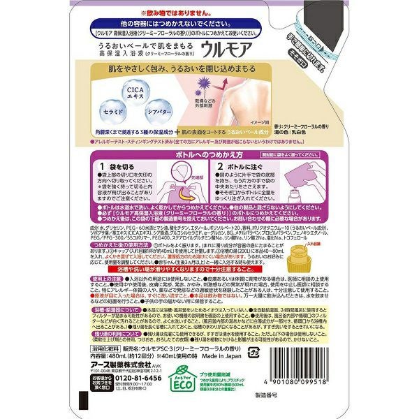 ウルモア高保湿入浴液 クリーミーフローラルつめかえ 480ml アース製薬