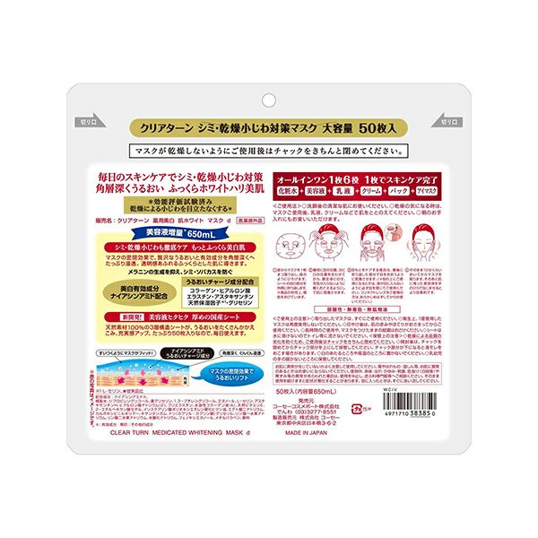クリアターン 薬用美白肌ホワイトマスク 50枚