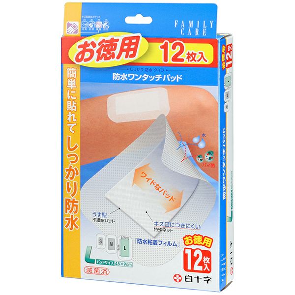 ●傷口とそのまわりを清潔にし、水気をよく取って、パッド部分を汚さないよう注意して使用してください。
