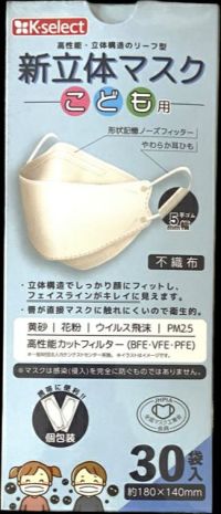 【k-select】新立体マスク こども用 30枚入 (個包装タイプ)