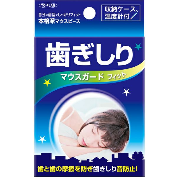 お湯で柔らかくして自分の歯型に合わせ、就寝前に上の歯に装着して下さい。