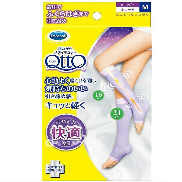「寝ながらメディキュット ショート ラベンダー M」は、はくだけで脚をキュッとひきしめ軽くする着圧ソックスです。