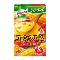 スイートコーン、でん粉、砂糖、クリーミングパウダー、デキストリン、食用加工油脂、食塩、乳糖、全粉乳、オニオン、チーズ、じゃがいも、コーンバターパウダー、バターソテーオニオンパウダー、濃縮ホエイ、乳たん白、チキンエキス、酵母エキス、香辛料、うきみ(クルトン)/調味料(アミノ酸等)、膨脹剤、(一部に小麦・乳成分・大豆・鶏肉を含む)