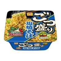 麺130g、チキンと玉ねぎの旨みが利いた塩味ソースに「バジル入り特製スパイス」が付いた大盛塩焼そば。