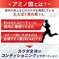 エネルギー源となるアミノ酸1500mg、運動で失われやすいビタミンB1、ビタミンC、カラダに不足しがちなビタミンD、カルシウム、ご飯1杯分相当のエネルギー160kcalを配合した、効率的でバランスの良い栄養補給をサポートするゼリードリンクです。 スポーツ時にもおいしくお飲み頂けるすっきりとしたりんご味です。