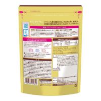 魚コラーゲンペプチド、マルトデキストリン、植物油脂、コエンザイムQ10、米胚芽抽出物(セラミド含有)/トレハロース、V.C、グルコサミン、アルギニン、ヒアルロン酸、乳化剤、増粘剤(アラビアガム)、香料、甘味料(スクラロース)、(一部にオレンジ・大豆・ゼラチンを含む)