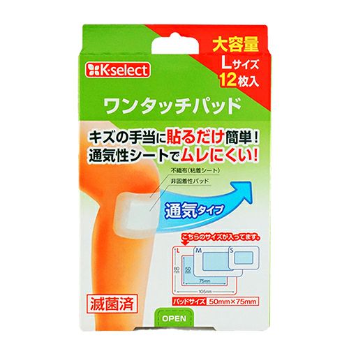 Lサイズ12枚入り粘着シート(mm)(縦)105×(横)80吸収体(mm)(縦)75×(横)50個装サイズ(mm)(幅)115×(高さ)183×(奥行)30