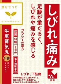 牛車腎気丸エキス(「症候別治療」,1/2量) 2,400mg (ジオウ2.5g,サンシュユ・サンヤク・タクシャ・ブクリョウ・ボタンピ・ゴシツ・シャゼンシ各1.5g,ケイヒ0.5g,ブシ末0.25gより抽出。)