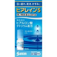 原因*から改善する目薬、ヒアレインS。 (*目の症状の原因の一つであるうるおい不足) ヒアレインSは、有効成分ヒアルロン酸ナトリウム配合のスイッチOTC医薬品です。 ヒアルロン酸ナトリウムがうるおいをキープし、目の疲れ、乾き、かすみの原因の一つである うるおい不足を改善します。 コンタクトレンズ装用時も点眼できます。(カラーコンタクトレンズを除く) 1回1滴、1日5~6回点眼で正しく使って、効き目を実感ください。