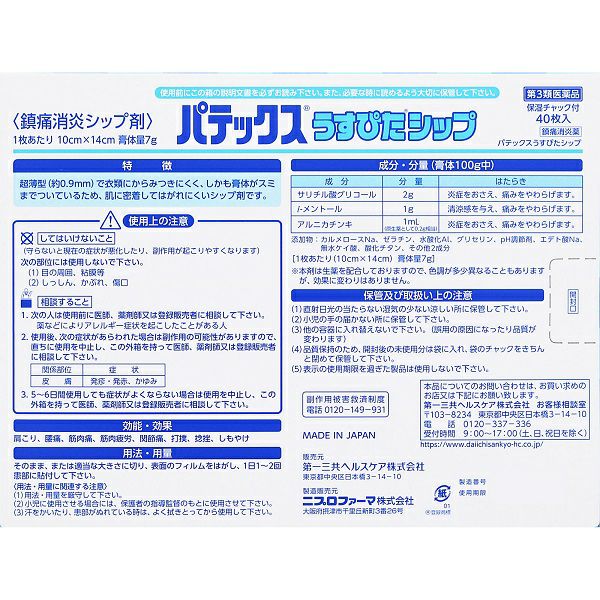 【第3類医薬品】パテックスうすぴたシップ 40枚 第一三共ヘルスケア