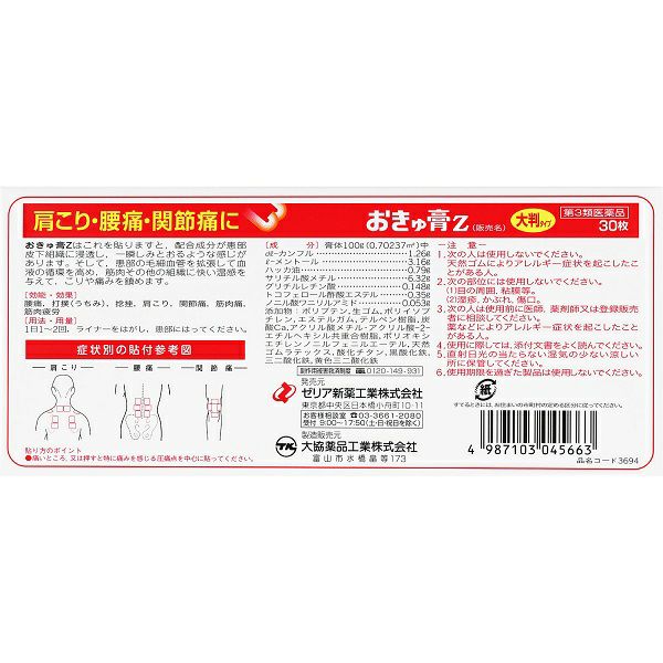 【第3類医薬品】おきゅ膏Z 30枚 ゼリア新薬工業