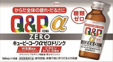 (100mL中)/チアミン硝化物(V.B1)10mg、リボフラビンリン酸エステルナトリウム5mg[リボフラビン(V.B2)として3.93mg]、ピリドキシン塩酸塩(V.B6)10mg、タウリン1500mg、オキソアミヂン50mg、エゾウコギエキス30mg(エゾウコギとして600mg)、L-アルギニン塩酸塩50mg、無水カフェイン50mg[添加物]クエン酸、クエン酸Na、DL-リンゴ酸、パラベン、安息香酸Na、スクラロース、アセスルファムK、エリスリトール、還元麦芽糖水アメ、香料、バニリン、エタノール、プロピレングリコール