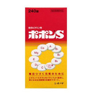 ポポンSは、健康の維持増進、栄養補給に必要な8種類のビタミンとカルシウム、マグネシウムをバランスよく配合した保健剤で、特にビタミンB1には吸収の優れたジセチアミン塩酸塩水和物(セトチアミン塩酸塩水和物)、ビタミンEには生理活性の高い天然型ビタミンEを含有しています。