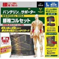 特殊形状のハードパネルをダブルテーピングベルトで押さえることで、腰椎上部から骨盤にかけて幅広くサポートします
