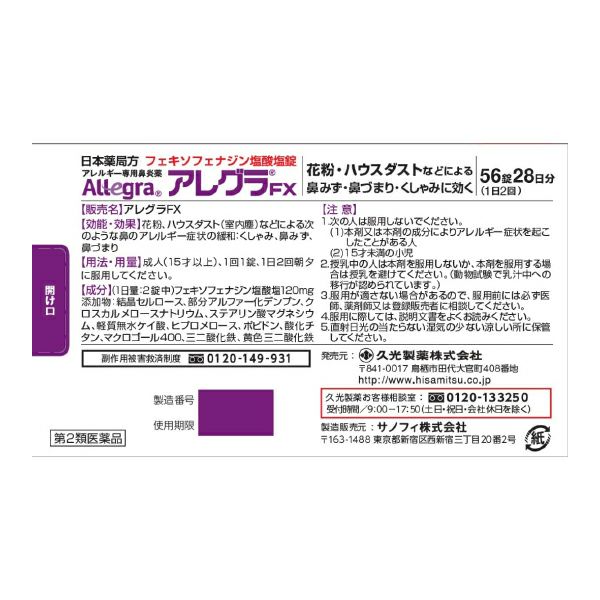 他の画像を見る 【第2類医薬品】久光製薬 アレグラFX 28錠入(14日分)×1箱 【セルフメディケーション税制対象商品】 セルフメディケーション税制対象 本体価格 ¥ 2,074 税込 カートに入れる お気に入りに登録する