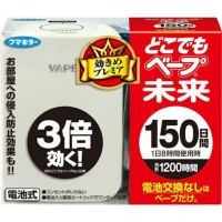 ●特殊カートリッジと自社開発の特殊ファン、モーターの力で3倍の効力を実現。(初代どこでもベープNo.1比較) ●電池・薬剤の取替えなしで150日間(1日8時間使用時)。
