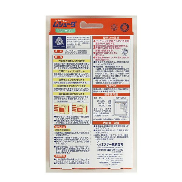 ムシューダ 防虫カバー 1年間有効 衣類 防虫剤 スーツ・ジャケット用 8枚 エステー