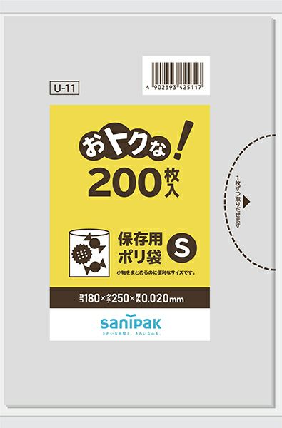 透明タイプの食品保存袋です。横180mm、縦250mm、厚さ0・02mmです。