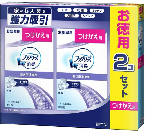 お部屋用 置き型ファブリーズは、W消臭ゼリーがしっかりニオイを吸収し、消臭することが出来る消臭剤です。