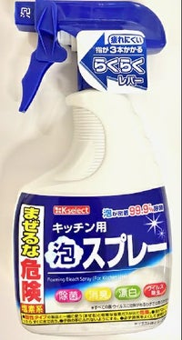 ●シンクに液を付けたままにすると変色の恐れがあるのですぐに水洗いする。 ●液が衣類や敷物にかかると脱色するので注意する。