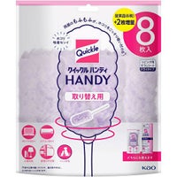 【使用方法】 別売りの「クイックルハンディ」「クイックルハンディ伸び縮みタイプ」に取り付けてお使いください。 ハンディシートをヘッドにかぶせます。 シートの端の穴(切込み)に道具のフックを通して固定してください。 ハンディシートの先端部が汚れてきたら、先端と持ち手側を逆さに付け替えれば、全面を無駄なく使えます。