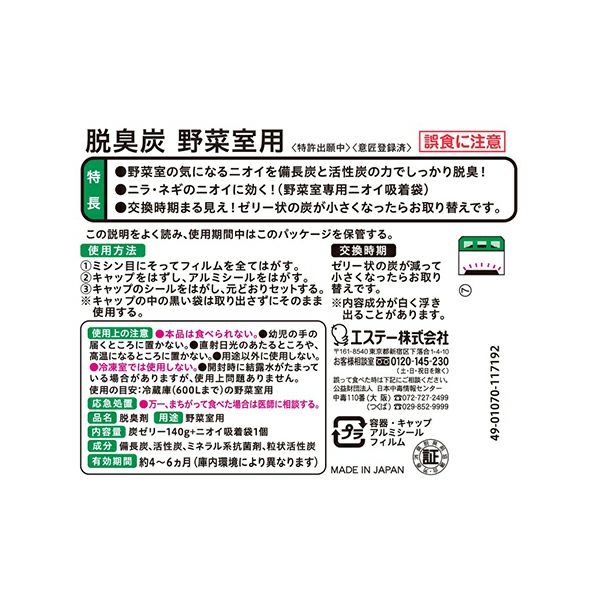 【K-select】冷蔵室野菜室用脱臭剤大容量240g