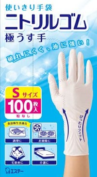 使いきり手袋ニトリルゴム極うす手S 100枚