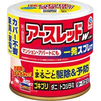 【使用方法】 (1)使用前に準備すること (1-1)部屋を閉め切り、戸棚、引き出し、押し入れなど害虫のかくれ場所になる所を開放してください。食器棚の食器は新聞紙などで覆ってください。 (1-2)寝具、衣類、飲食物、子供のおもちゃ、飼料、美術品、仏壇仏具などは、ポリ袋に入れるか、新聞紙などで覆うなどしてください。家具にはカバーは不要ですが、直接霧がかからないようにしてください。 (1-3)パソコン、ゲーム機器など記録媒体のある精密機器にはカバーをかけてください。ディスクなどは箱に収納してください。テレビなど家電製品にはカバーは不要ですが、直接霧がかからないようにしてください。 (1-4)ペットや植物、観賞魚などは、換気と掃除が終わるまで部屋の外に出してください。 (1-5)ガス警報器は反応することがあるので、プラグを抜くかポリ袋などで覆ってください。※使用後は必ず元に戻してください。(火災報知器にはカバー不要です) 【※注意】大型コンピュータの設置されている部屋では使用しないでください。移動できない水槽は、エアーポンプを止めて、ビニールで覆いをし、ガムテープで止めるなどして、完全密閉してください。 (2)アースレッドW ノンスモークを使用する (2-1)半透明のキャップを外し、本品を部屋の中央に置いてください。 ・直接火災報知器に霧があたらない場所で使用してください。霧が直接あたると火災報知器が作動することがあります。 ・缶底に塗ってある透明樹脂はすべり止めです。はがさないでください。 (2-2)カチッと音がして固定されるまでかかとを浮かし足の指で真上からゆっくりとペダルを踏んでください。薬剤が霧状になって噴射しはじめますので、直ちに部屋から出てください。 ※勢いよく薬剤が噴射されるので、顔を噴射口に近づけないでください。 ※足で踏む場合は必ずつま先で踏んでください。 (2-3)本品を噴射した後、部屋の外に出て1時間から2時間部屋を閉め切ってください。強力ワイド噴射がミクロの薬剤をすみずみまで行き渡らせ、駆除効果を発揮します。 【1缶の噴射時間(温度が25度の時)】(高温の場合は噴射時間が短くなる):約40秒※この間、入室することは避けてください。 (3)ご使用のあとで 【※注意】1時間から2時間経過してから入室してください。 【ワンポイント】 ●お使いの際は、各部屋に1個配置し、全部屋同時使用が効果的です。 ●ゴキブリの卵がかえる2週間から3週間後にもう一度使用すると効果的です。